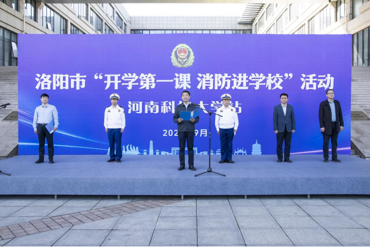 9月24日,洛陽市2025年“開學第一課 消防進學?!被顒釉诤幽峡萍即髮W舉行。黨委書記、校長王洪彬,洛陽市消防救援支隊支隊長鄧戰(zhàn)磊、副支隊長余志等出席活動。