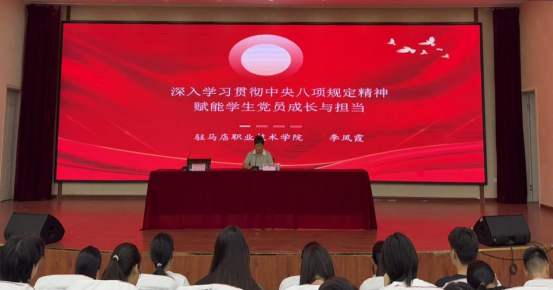 聚焦作風建設(shè),筑牢黨性根基。 9月10日,黨委委員、副校長李鳳霞聚焦《深入學習貫徹中央八項規(guī)定精神,賦能學生黨員成長與擔當》講授專題黨課。李校長深入闡釋了中央八項規(guī)定精神的重大意義與實踐要求,指出其作為新時代作風建設(shè)“定盤星”的關(guān)鍵作用,并緊密結(jié)合學生黨員實際,從認清背景意義、警惕“四風”問題、明確實踐路徑三個方面,引導學生黨員嚴于律己、甘于奉獻、勇于擔當,將優(yōu)良作風內(nèi)化為學習動力和服務(wù)行動,錘煉黨性修養(yǎng),爭做政治過硬、本領(lǐng)高強、作風優(yōu)良的新時代合格黨員。