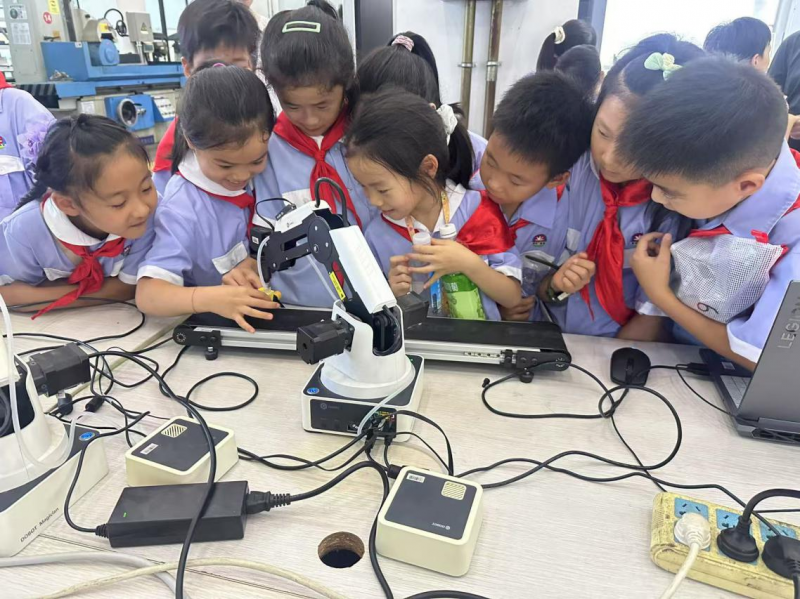 9月19日上午,中原工學(xué)院熱情接待了鄭州市康寧小學(xué)一至五年級(jí)的60余名師生,成功舉辦了一場(chǎng)內(nèi)容豐富、趣味盎然的實(shí)驗(yàn)室開放日科普實(shí)踐活動(dòng)?;顒?dòng)期間,學(xué)生在中原工學(xué)院教師和志愿者的引導(dǎo)下,先后參觀了多個(gè)特色實(shí)驗(yàn)室與科技展示平臺(tái)。在工業(yè)設(shè)計(jì)中心,康寧小學(xué)學(xué)生親身體驗(yàn)了“手功能綜合康復(fù)訓(xùn)練平臺(tái)”和“平衡功能康復(fù)及評(píng)估系統(tǒng)”,在人機(jī)交互中感受科技如何服務(wù)健康生活。集成電路學(xué)院為學(xué)生展示了“逐鹿中原”智能汽車團(tuán)隊(duì)的多項(xiàng)成果,包括獨(dú)輪信標(biāo)組、完全模型組、智慧視覺(jué)組和極速光電龍芯組等設(shè)計(jì)的智能小汽車,動(dòng)態(tài)演示引發(fā)了陣陣驚嘆聲和掌聲。在金剛石國(guó)家地方聯(lián)合實(shí)驗(yàn)室,學(xué)生參觀了鉆石、藍(lán)鉆、白鉆及工業(yè)級(jí)金剛石,通過(guò)顯微鏡觀察材料的微觀形貌,中原工學(xué)院教師精彩的講解在他們心中種下了科學(xué)的種子。