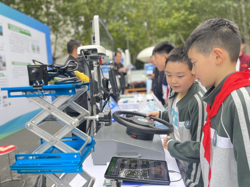 農具展示區(qū)里,智能播種機、無人機植保設備等高科技農業(yè)工具吸引目光。工作人員演示無人機功能,學生們嘗試操作播種機按鈕,感受科技助農力量。旁邊的展臺上,化肥樣本與檢測儀器并列,工作人員講解科學使用化肥的方法,讓學生們了解 “莊稼長得好” 的科學原理。