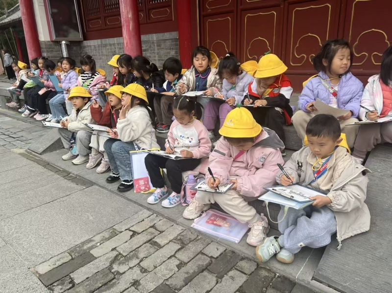 活動結(jié)束后,孩子們用畫筆記錄下一天的見聞與感受。方鼎的紋樣、城墻的夯土、文廟的飛檐、游戲的歡笑……躍然紙上。這些作品不僅是學(xué)習(xí)的輸出,也將成為“杜嶺課程”中寶貴的生成性資源。