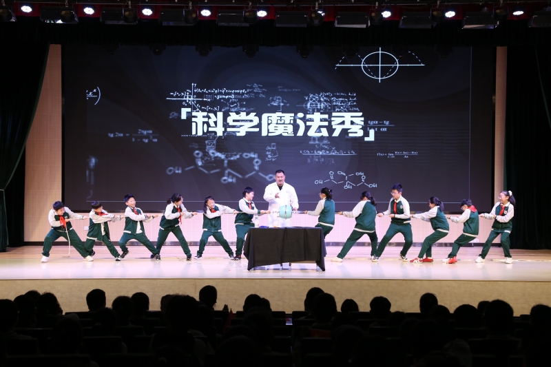 科技節(jié)的帷幕在熱烈的氣氛中正式拉開。開幕式上,學(xué)校小水滴合唱團(tuán)的孩子們?cè)凇队癖P》的演唱中將國(guó)之重器里的東方智慧與科技溫度唱給大家聽。六年級(jí)學(xué)生用創(chuàng)意與表演編織了一場(chǎng)科學(xué)追夢(mèng),一幕幕的戲劇再現(xiàn)了宋應(yīng)星、袁隆平的科學(xué)人生。學(xué)校特色樂器小鐘琴表演的《國(guó)家》更是詮釋了家國(guó)相連的溫度。當(dāng)教師代表和學(xué)生代表共同為本次科技節(jié)按下啟動(dòng)鍵時(shí),更是將本次開幕式推向了高潮。隨后的“科學(xué)魔法秀”表演,將深?yuàn)W的科學(xué)原理以奇幻有趣的實(shí)驗(yàn)形式呈現(xiàn),引得現(xiàn)場(chǎng)驚嘆連連,瞬間點(diǎn)燃了孩子們對(duì)科學(xué)的好奇與向往。