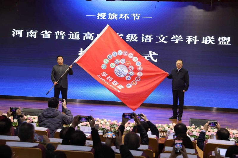 隨后,趙陽將聯(lián)盟旗幟鄭重授予聯(lián)盟理事長代表、鄭州市第一〇一中學(xué)黨委書記李國喜。旗幟舞動,標(biāo)志著河南省普通高中省級語文學(xué)科聯(lián)盟正式揚帆啟航。