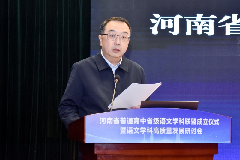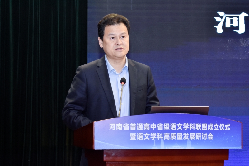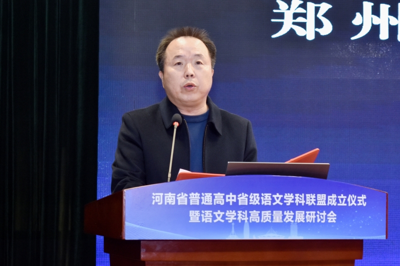 河南省基礎(chǔ)課程與教學(xué)發(fā)展中心黨委書記、主任,河南省基礎(chǔ)教育質(zhì)量檢測中心主任趙陽熱烈祝賀聯(lián)盟成立,他希望聯(lián)盟能成為教學(xué)改革的“試驗田”、優(yōu)質(zhì)資源的“聚合池”、教師成長的“加油站”,真正成為引領(lǐng)河南高中語文教育高質(zhì)量發(fā)展的“新引擎”。