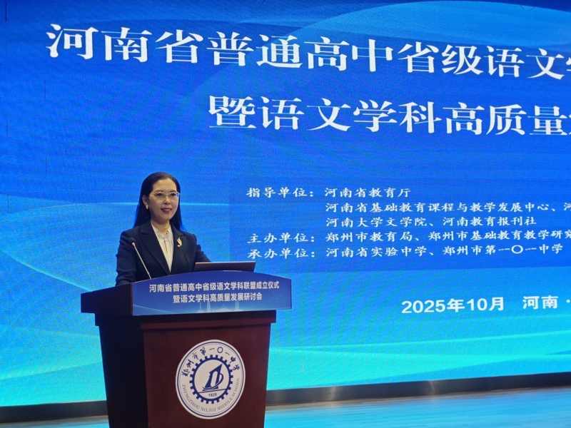 為深入貫徹《河南省人民政府辦公廳關(guān)于新時代推進(jìn)普通高中育人方式改革的實施意見》,10月31日,河南省普通高中省級語文學(xué)科聯(lián)盟成立儀式暨語文學(xué)科高質(zhì)量發(fā)展研討會在鄭州市第一〇一中學(xué)舉行。活動通過遠(yuǎn)程平臺同步直播,吸引30余所學(xué)校線上參與。