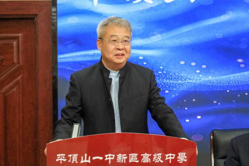 會(huì)上,平頂山一中新區(qū)高級(jí)中學(xué)理事長、校長關(guān)朝輝致歡迎辭。