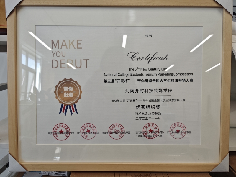 近日,第五屆“開元杯”——帶你出道全國(guó)大學(xué)生旅游營(yíng)銷大賽決賽在浙江省湖州市德清縣莫干山開元森泊度假樂園圓滿落幕。經(jīng)過激烈角逐,河南開封科技傳媒學(xué)院(以下簡(jiǎn)稱“科傳學(xué)院”)旅游管理專業(yè)2022級(jí)學(xué)生高嬌艷在本次大賽中表現(xiàn)優(yōu)異,與兄弟院校組成的聯(lián)合團(tuán)隊(duì)勇奪全國(guó)二等獎(jiǎng)。同時(shí),科傳學(xué)院商學(xué)院榮獲大賽“優(yōu)秀組織獎(jiǎng)”,雙喜臨門,成績(jī)斐然。