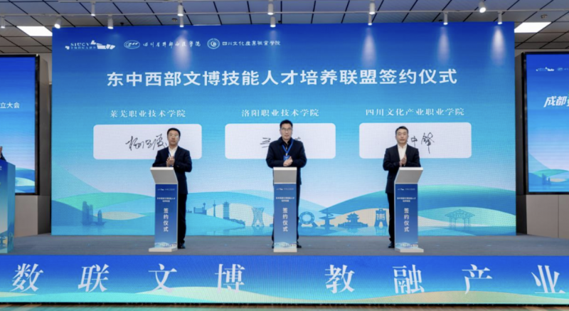 11月26日,由洛陽職業(yè)技術學院聯(lián)合四川文化產(chǎn)業(yè)職業(yè)學院、萊蕪職業(yè)技術學院發(fā)起成立的“東中西部文博技能人才培養(yǎng)聯(lián)盟”在四川文化產(chǎn)業(yè)職業(yè)學院正式揭牌,成為全國首個貫通東中西部的文博類職業(yè)教育協(xié)作平臺。洛陽職業(yè)技術學院副校長張志友出席揭牌儀式并現(xiàn)場簽約。