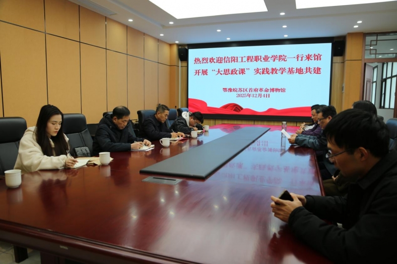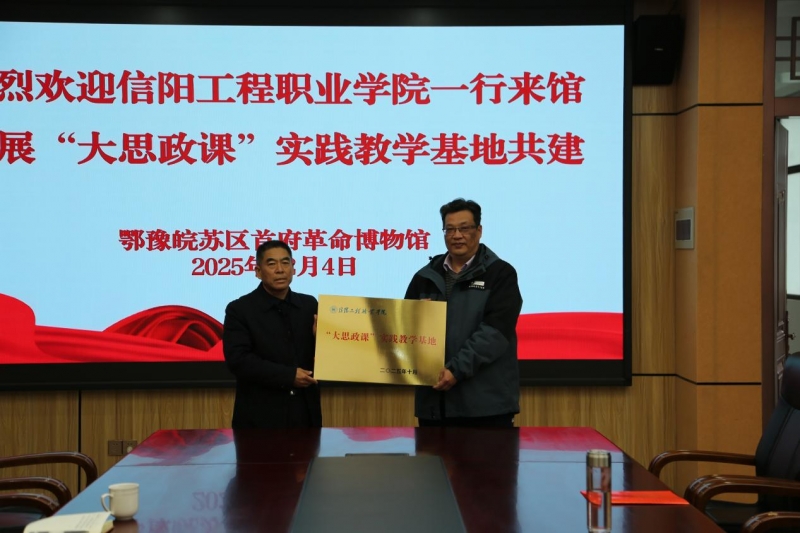 12月4日,信陽工程職業(yè)學(xué)院“大思政課”實踐教學(xué)基地簽約揭牌儀式在鄂豫皖蘇區(qū)首府革命博物館舉行。此次校館攜手,旨在深度挖掘紅色資源育人價值,推動思政小課堂與社會大課堂有機融合,為落實立德樹人根本任務(wù)搭建重要平臺。鄂豫皖蘇區(qū)首府革命博物館副館長李森,信陽工程職業(yè)學(xué)院常務(wù)副校長楊金國等雙方工作人員、教師代表共同出席儀式。