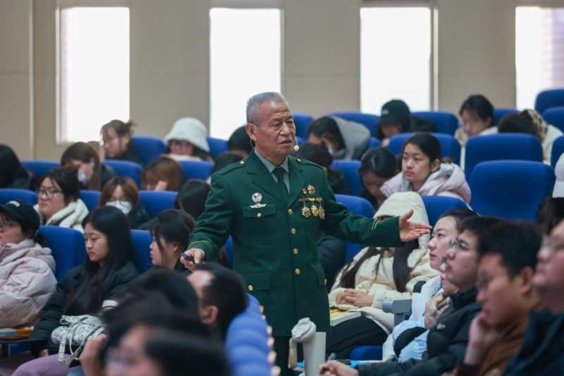 許玉亭同志以“弘揚偉大抗戰(zhàn)精神,為實現強國建設、民族復興偉業(yè)而奮斗”為主題,通過鮮活感人的故事,生動講述了在艱苦卓絕的抗戰(zhàn)歲月中,中國共產黨帶領中國人民以不屈意志和英勇抗爭凝聚形成的偉大抗戰(zhàn)精神,以及在這一精神激勵下取得的輝煌成就。他結合自身參軍報國、服務地方、退休后持續(xù)投身紅色宣講的豐富經歷,激勵青年學子賡續(xù)英雄血脈,傳承強國之志,將個人理想融入國家發(fā)展與民族復興的偉大事業(yè)。