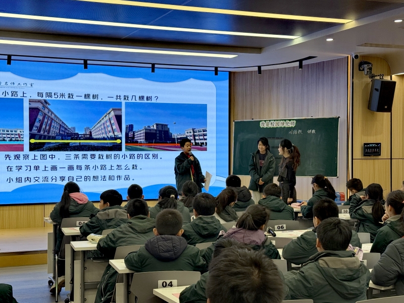 第二節(jié)課由滎陽市外國語小學秦泓博老師執(zhí)教的《植樹問題》,本節(jié)課以滎陽外國語小學校園景色為導入,巧妙結(jié)合生活實際,迅速拉近了數(shù)學知識與學生的距離,充分體現(xiàn)了數(shù)學源于生活的理念。教師借助數(shù)學閱讀單引導學生提取關鍵信息,聚焦“20米小路、每隔5米栽樹”的核心條件,順勢引出“間隔”“間隔數(shù)”的概念,教學環(huán)節(jié)銜接自然。讓學生通過“畫一畫”的方式自主探究解題思路,既尊重了學生的主體地位,又培養(yǎng)了其動手操作和邏輯思維能力,將數(shù)學閱讀與解題實踐有機融合。整節(jié)課緊扣數(shù)學閱讀主題,教學目標明確,方法得當,是一節(jié)扎實有效的小學數(shù)學閱讀融合課。