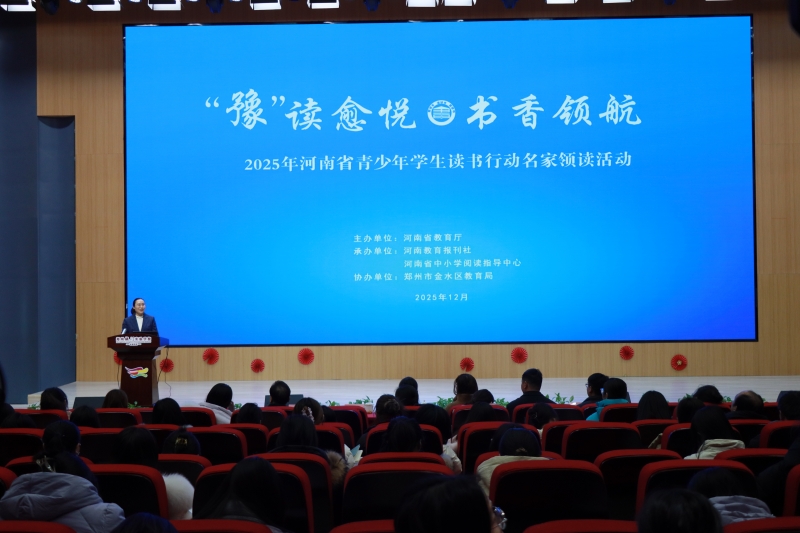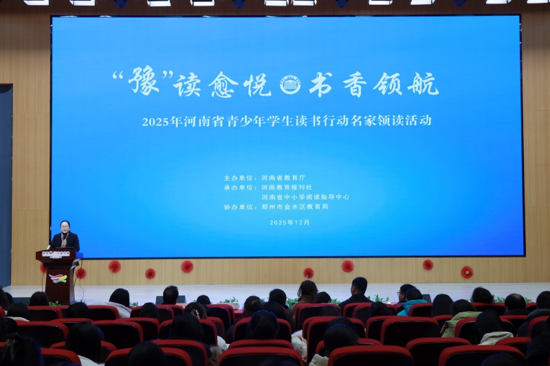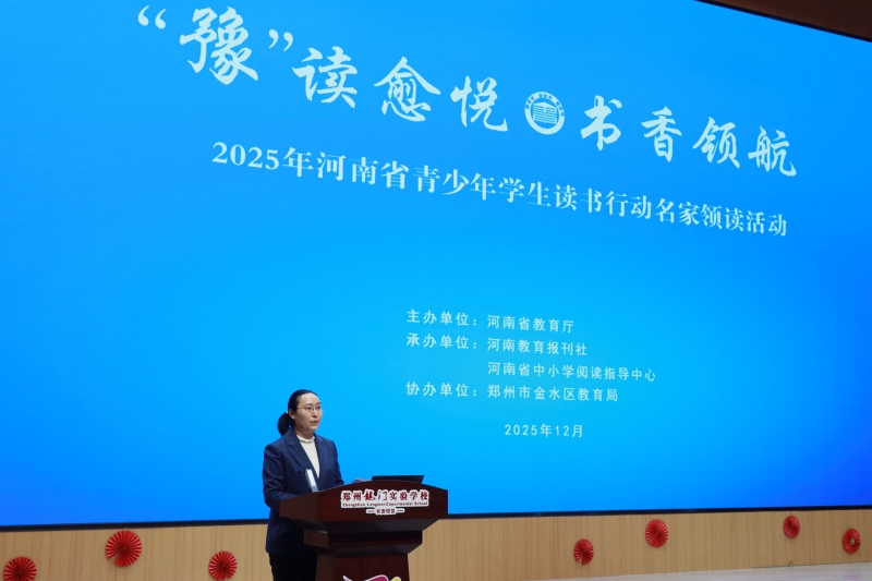 冬日暖陽(yáng),書(shū)韻流香。2025年12月25日下午,由河南省教育廳主辦,河南教育報(bào)刊社、河南省中小學(xué)閱讀指導(dǎo)中心承辦,鄭州市金水區(qū)教育局協(xié)辦的“2025年河南省青少年學(xué)生讀書(shū)行動(dòng)名家領(lǐng)讀活動(dòng)”在鄭州龍門(mén)實(shí)驗(yàn)學(xué)校長(zhǎng)安校區(qū)隆重舉行?;顒?dòng)匯聚全區(qū)中小學(xué)閱讀教學(xué)骨干教師,共探數(shù)智時(shí)代青少年閱讀教育的創(chuàng)新路徑與育人使命,成為深化“書(shū)香河南”建設(shè)的一次生動(dòng)實(shí)踐。