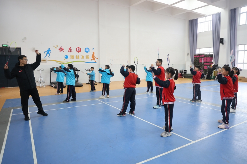 針對一至二年級學(xué)生年齡小、注意力集中時間短、對新鮮事物充滿好奇的特點(diǎn),學(xué)校采用游戲化教學(xué)方式,將球類運(yùn)動的基本動作融入趣味游戲之中。“運(yùn)球繞樁”“傳球接力”“趣味射門”等一系列充滿童趣的游戲,讓孩子們在玩中學(xué)、學(xué)中樂,在潛移默化中培養(yǎng)對球類運(yùn)動的興趣。 三至四年級則是球類運(yùn)動基礎(chǔ)技能的“打地基”階段。學(xué)校聚焦籃球、足球、乒乓球、羽毛球四項(xiàng)運(yùn)動的基礎(chǔ)動作,開展系統(tǒng)性訓(xùn)練。從籃球的高低運(yùn)球、足球的腳內(nèi)側(cè)傳球,到乒乓球的正手攻球、羽毛球的發(fā)高遠(yuǎn)球,每一項(xiàng)技能都進(jìn)行反復(fù)練習(xí),讓學(xué)生們打下扎實(shí)的運(yùn)動基礎(chǔ)。進(jìn)入五至六年級,學(xué)生的運(yùn)動能力和興趣偏好逐漸顯現(xiàn)。學(xué)校打破班級界限,開展走班選項(xiàng)教學(xué),設(shè)置籃球、足球、乒乓球、羽毛球、排球五個專項(xiàng)班級,學(xué)生可以根據(jù)自己的興趣自主選擇心儀的項(xiàng)目。“以前上體育課,總是跟著老師練一些基礎(chǔ)動作,沒什么新鮮感。現(xiàn)在可以選自己喜歡的排球班,每天都能和小伙伴們一起打球,太開心了!”六年級學(xué)生于子晨興奮地說。