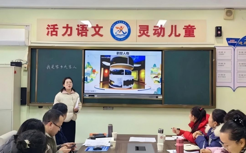 工作室成員馮秀老師首先帶來精彩的課例分享《跟著課本去旅行——我是家鄉(xiāng)代言人》。馮秀以家鄉(xiāng)鶴壁為情境載體,引導(dǎo)學(xué)生從“美景”“美食”“人物”等多維度認(rèn)識家鄉(xiāng),巧妙地將口語交際、寫作訓(xùn)練與地理、歷史、社會實踐、美術(shù)設(shè)計等學(xué)科能力融合。之后,馮秀詳細(xì)闡述了該課例從構(gòu)思、設(shè)計到反復(fù)打磨的研修過程與改進(jìn)思考,工作室成員圍繞課例展開深入研討,逐一評課,現(xiàn)場思維碰撞不斷。