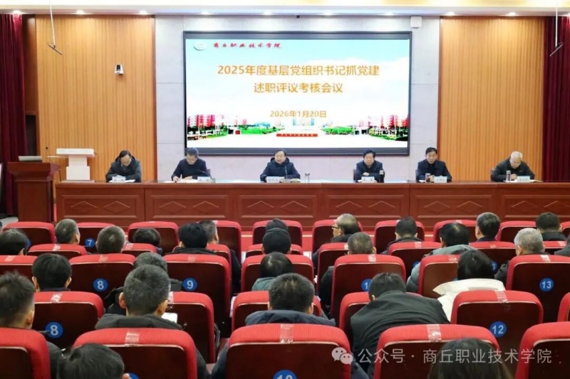 1月20日上午,商丘職業(yè)技術(shù)學(xué)院在明德樓錄播廳召開2025年度基層黨組織書記抓黨建述職評議考核會(huì)議。校領(lǐng)導(dǎo)班子成員、中層正職干部、各黨總支副書記、機(jī)關(guān)黨支部書記及離退休職工管理處第一黨支部書記等參加會(huì)議,會(huì)議由校領(lǐng)導(dǎo)朱韶主持。