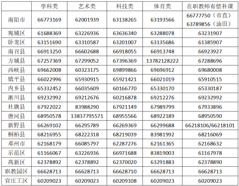 南陽市面向中小學生的校外培訓咨詢舉報電話